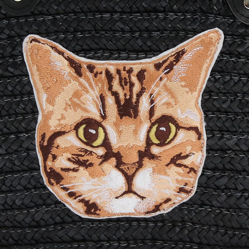 ねこ 猫 刺繍 かごバッグ トートバッグ 底ビス付 (C:ブラック/アメショー猫)